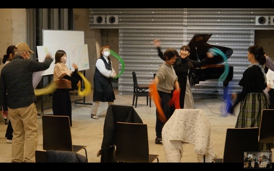 特に印象的だったのは、音を使って感情を表現する「音とばし」や、参加者が色鮮やかなスカーフを手に輪になって動く場面です。