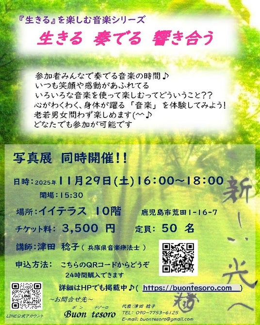 『生きる 奏でる 響き合う』:2025年11月29日、鹿児島県鹿児島市にて「生きるを楽しむ音楽」イベントを開催しました。