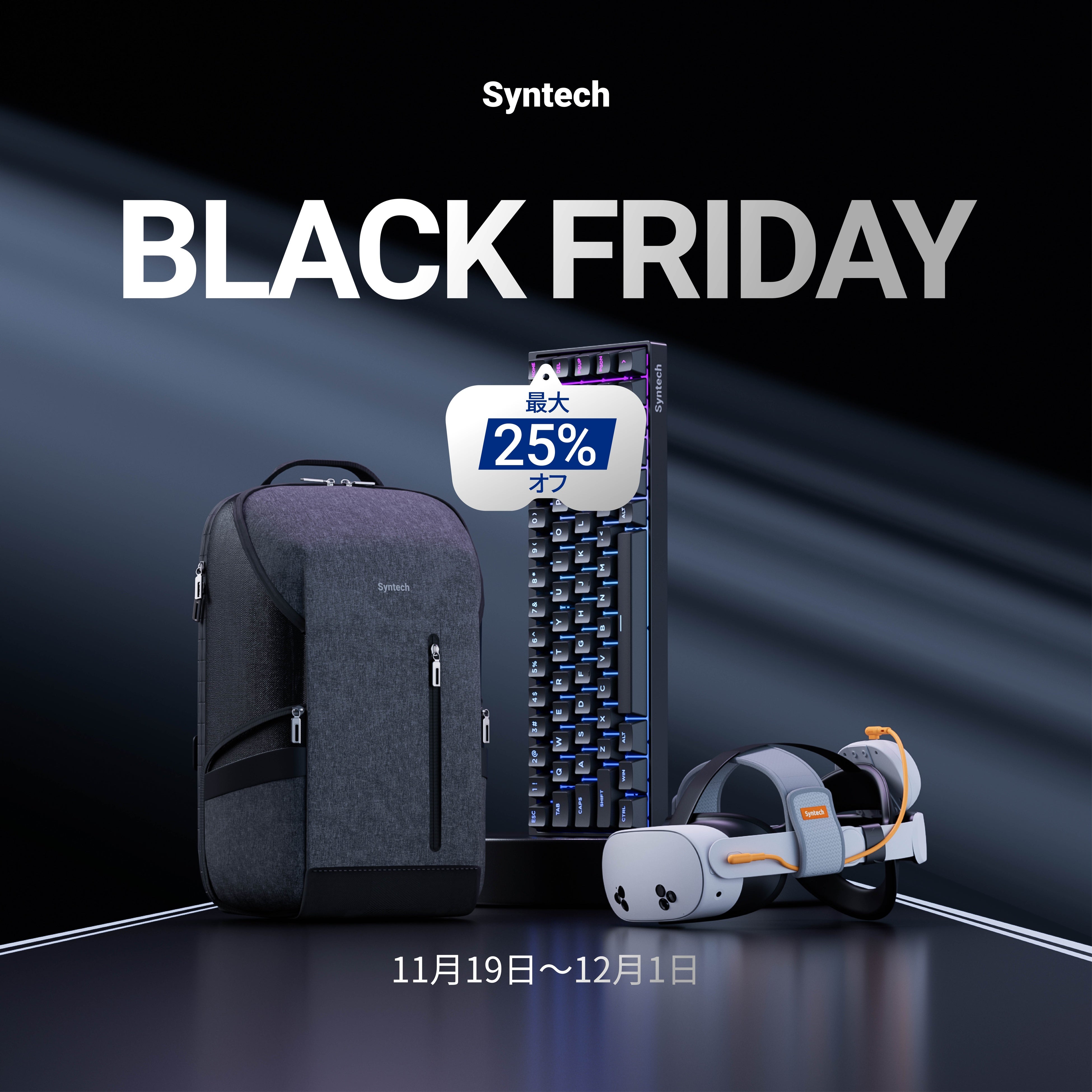 革新的なデザインと高品質なプロダクトで注目を集めるテックブランド「Syntech(シンテック)」(本社:中国深セン市)は、2025年11月19日(水)0:00から12月1日(月)23:59まで、Amazon公式店舗、ビックカメラ.com、Syntech公式ストアにて「BLACK FRIDAY SALE」を実施いたします。