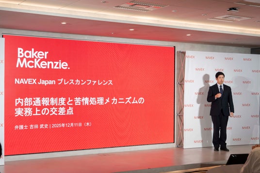 さらに、ゲストとしてベーカー&マッケンジー法律事務所(外国法共同事業)パートナーの吉田武史氏を迎え、内部通報制度と苦情処理メカニズムが実務でどのように交差するのか、最新の規制動向を踏まえた論点を解説。NAVEXのグローバルな知見と法律専門家の視点が交差する形で、日本企業のGRC実務に関する理解が深まる場となりました。