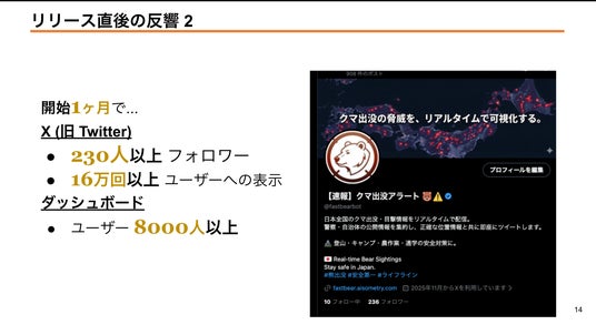 また、X(旧Twitter)では開始1か月で230人以上のフォロワーと16万回以上の表示を獲得し、ダッシュボードの利用者も8,000人を超えています。