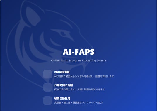 株式会社タイガーコーポレーション(本社:北海道札幌市、代表取締役:原田弘樹)は、自動化法設備の図面(PDF)をAIで解析し、感知器種別および数量を自動抽出するクラウド型システム「AI-FAPS」を2026年4月1日に正式リリースいたします。