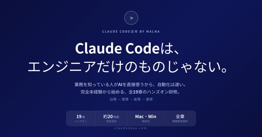 Claude Code道場(https://claudedojo.com/)は、プログラミング経験のないビジネスパーソンがAIエージェントを使いこなせるようになるための学習プラットフォームです。malnaの社内研修から生まれたコンテンツを体系化し、無料公開しました。