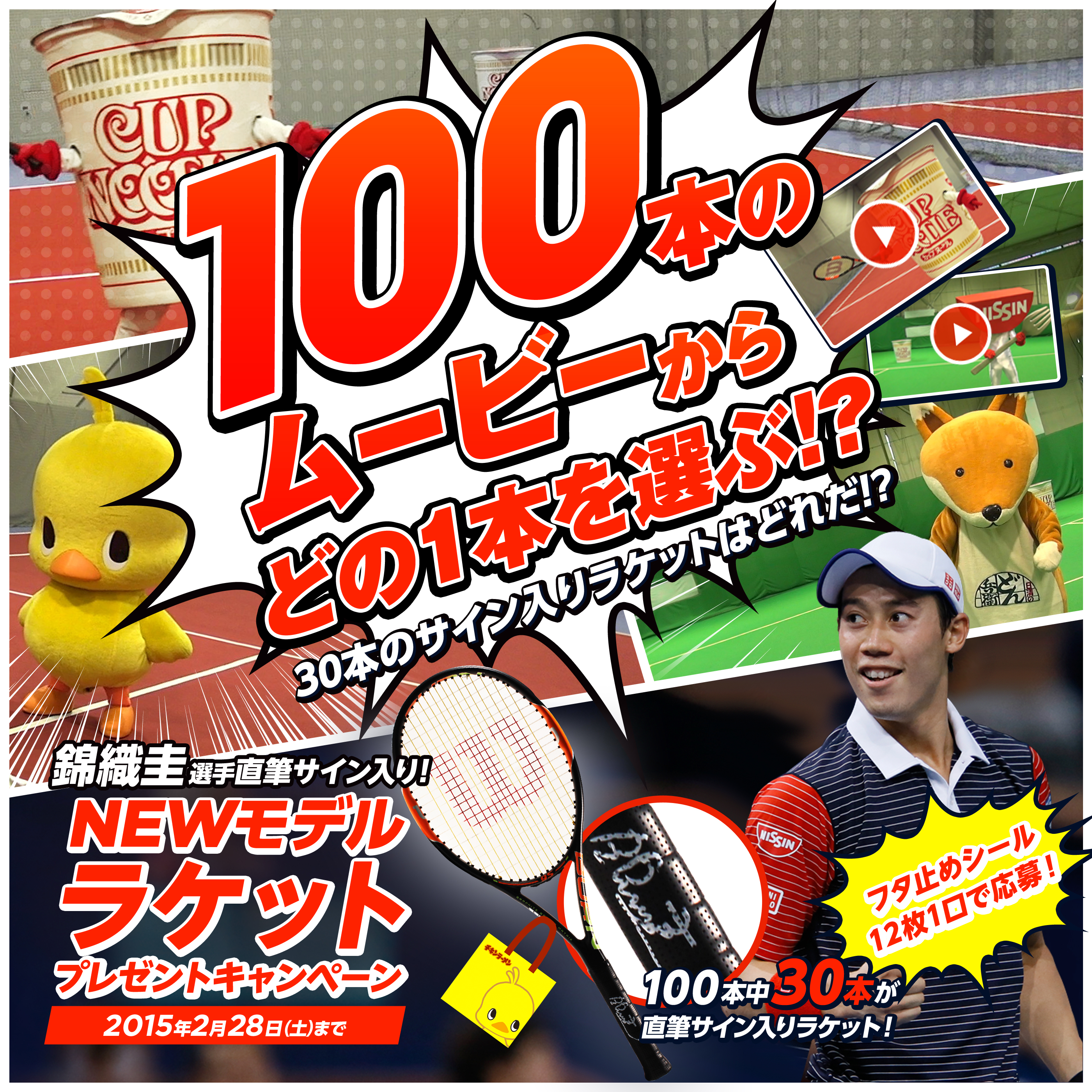 カップヌードル プレゼントキャンペーンスタート NEWモデルラケット100本プレゼント!30本は直筆サイン入り! 2015年1月19日(月)~2015年2月28日(土)