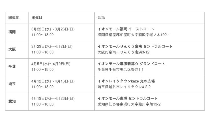 ~福岡、大阪、千葉、埼玉、愛知の5か所で開催~