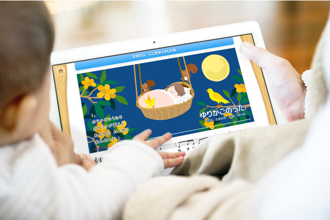 新しい学習ジャンルの『歌』は、美しい声楽や楽曲、歌の内容を表現した動くアニメーションはもちろんのこと、楽譜と歌唱位置のナビゲート、保護者や子ども自身が歌唱するためのカラオケモードの実装など、子どもの年齢や発達度合い、興味関心に応じて、様々な使い方ができるコンテンツです。