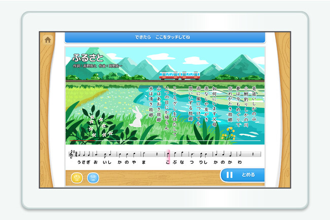 追加アップデートの第1弾は、新しい学習ジャンルとなる『歌』。今回は「ゆりかごのうた」「どんぐりころころ」「ふるさと」の3つの歌曲が追加されます。