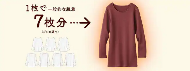 適度な厚みで、保温力は一般肌着の最大7枚分に相当します。(グンゼ調べ)