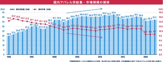 現代のアパレル業界では、大量生産・大量廃棄が深刻な環境課題となっています。国内供給量が市場規模を上回る状況が続いており、売れ残り在庫が発生しやすい構造となっています。※1