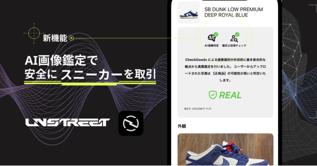 15万ダウンロードを超えたスニーカー・ストリートファッションアプリ「UNSTREET」が、同アプリ内でAI画像鑑定を用いた真贋鑑定が可能なスニーカーの売買ができるCtoCフリマ機能をリリース
