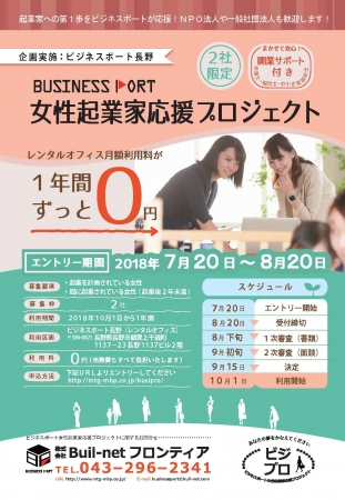 首都圏・中部地方にサービスオフィス「ビジネスポート」を展開する株式会社Buil-netフロンティア(代表取締役 熊森克己)は、女性起業家応援プロジェクトを始動しました。女性でも安心して利用できる受付常駐型レンタルオフィスの月額利用料を1年間0円にし、事業に専念出来る快適なオフィス環境を無料提供することで、地域で起業を志す女性起業家の夢の第一歩を応援します。