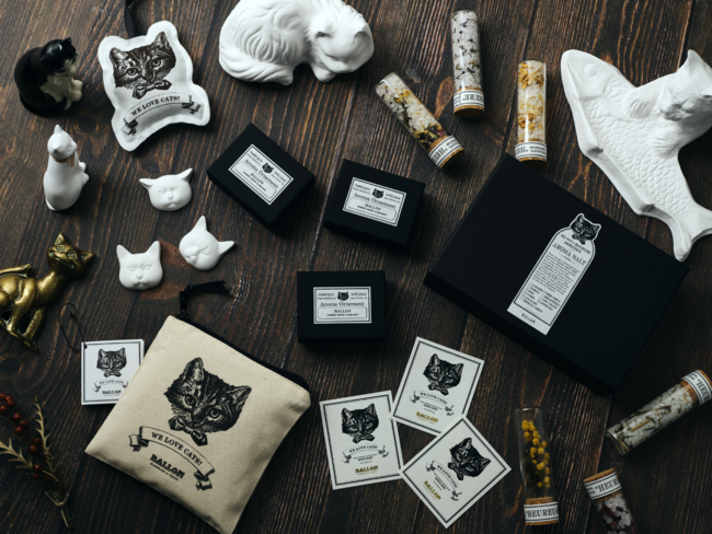 BALLONは従来より、スタッフの飼い猫をモデルにしたアロマオーナメントなど、猫を主役とした商品を多数発表しております。