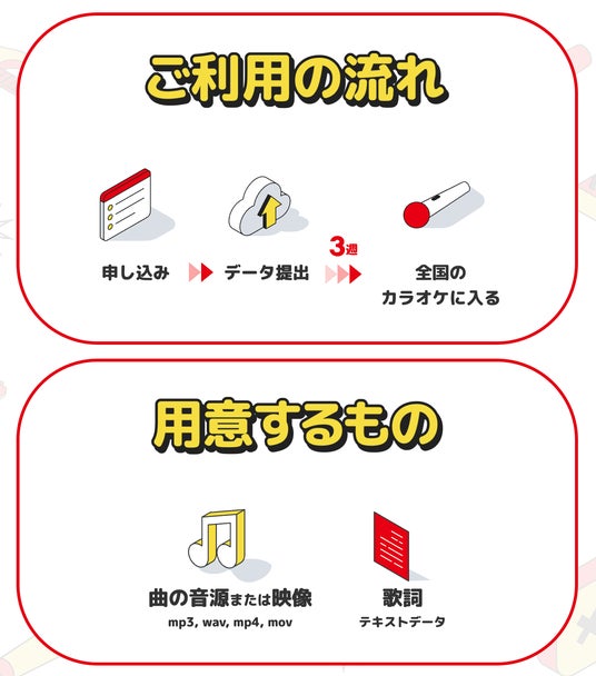 Web上で曲の情報を入力し、クレジットカードで利用料を支払い、曲のデータを送信する。これだけで3週間後には全国のカラオケで歌えます。