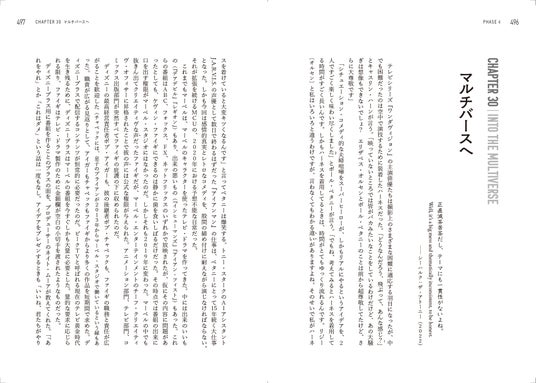 本書はマーベル・スタジオ年代記の決定版であると同時に、監督・俳優の降板や多様性や新展開への無理解、創造性〔クリエイティヴィティ〕と経営〔ビジネス〕の対立、パンデミックによる製作・公開の停止などあらゆる困難を乗り越え、IPビジネスとストリーミングで世界有数のエンターテイメント企業となった新興スタジオの戦いの物語でもあります。