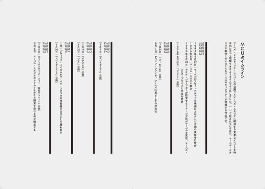 本書は、1970年代のマーベル初期映像作品、そしてスタン・リーが立ち上げた「マーベル・プロダクション」の失敗やトイ・ビズによるマーベル・コミックの買収など、マーベル・スタジオ設立前史から、『アイアンマン』以降のマーベル・シネマティック・ユニバースの成功、そしてディズニープラスでの新展開まで余すところなく記述しています。