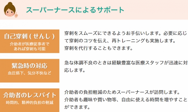 「腎不全サポートデスク」(無料コールセンター)を開設している、株式会社スーパーナース(本社:東京都千代田区、代表取締役:石塚雅洋)は、在宅血液透析サポートが1ヵ月間50%OFF!キャンペーンを実施します。