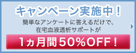 そこで、在宅血液透析サポートが1ヵ月間50%OFF!キャンペーンを実施します。