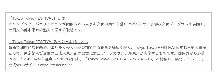 主催:東京都、公益財団法人東京都歴史文化財団 アーツカウンシル東京