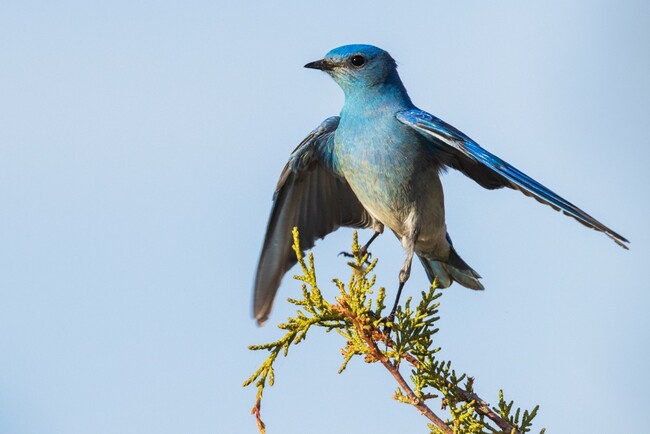 マウンテンブルーバードの美しい羽が幸せを運ぶ。