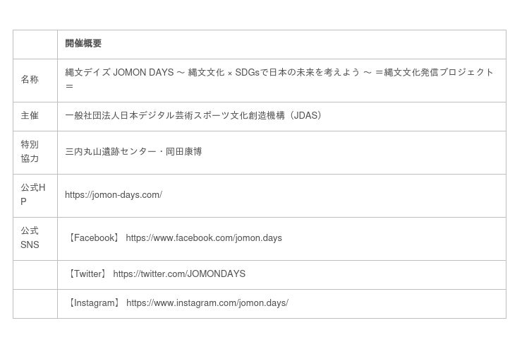 一般社団法人日本デジタル芸術スポーツ文化創造機構(所在地:東京都千代田区九段南、代表理事:尼崎勝司、以下JDAS)が主催する「JOMON DAYS SATELLITE」が2022年10月1日(土)から東急プラザ銀座でスタートしました。