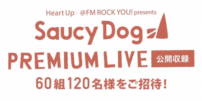 ハートアップアプリからの応募で、【ハートアップ × @FM ROCK YOU! Presents】Saucy Dog プレミアムライブ(公開収録)へ抽選で60組120名様をご招待させていただきます。