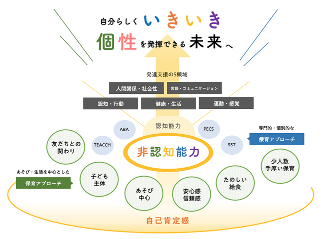 今やれること、今しかやれないことを見極めて支援内容を構成していきます。幼稚園・保育園と併用して小集団療育で社会性を育む。幼稚園・保育園の代わりに通園して自己肯定感を育む。お子さまの個性を大切にした進路を形作っていくための支援の場でもあります。