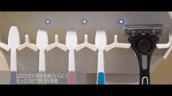 除菌なしでは生きられない!歯ブラシの【除菌99.9%】。ズボラでも使える!「壁掛け歯ブラシ除菌ホルダー」