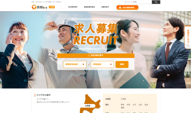 資格bizは、様々な資格に特化した全国の求人情報を提供しています。求人検索に加え、企業検索も可能です。