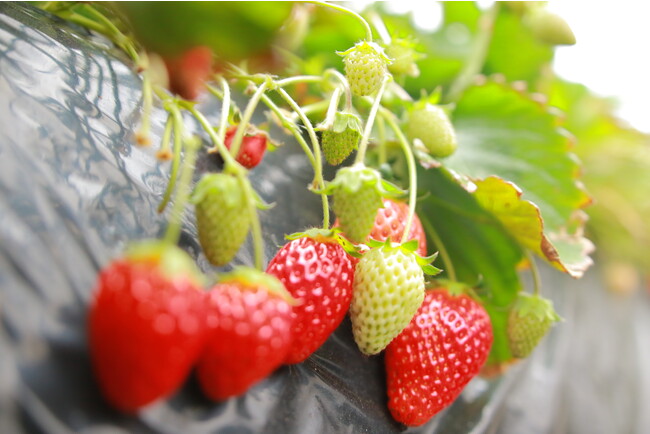 さつまいも以外にも季節の野菜やフルーツを育てている「らぽっぽ なめがたファーマーズヴィレッジ」では、専用ハウスで丁寧に栽培したいちご摘み体験イベントをお楽しみいただけます。いちご摘みの後は、おいもといちごのオリジナルパフェを手作り体験できるプランもご用意しております。
