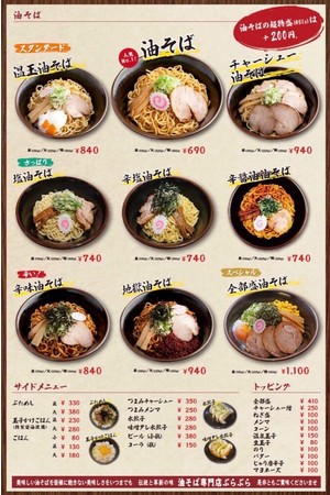 油そば(醤油味)は、創業時から690円という価格を貫き通しております。