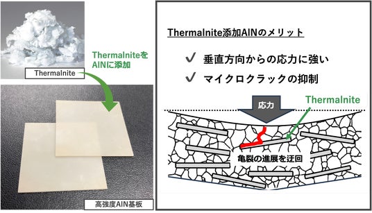 現在、両社は従来のAlN基板の機械強度を2倍近く向上させた次世代高強度AlN基板の量産化を目指しています。この新製品は、5G・6G通信モジュールや再生可能エネルギー分野で注目されるSiC/GaNを活用した次世代パワーデバイスの熱課題解決に寄与することが期待されています。
