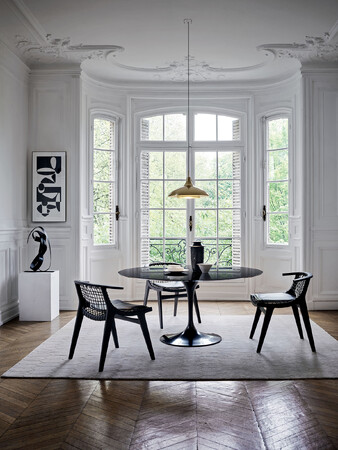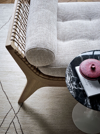 アントニオ ・チッテリオがデザインしたクリスモスコレクションは、ノルの伝統的なクラシックデザインを踏襲しながらも、モダンな表現となっています。木材や大理石などの天然素材を使用し、サスティナビリティ(持続可能性)に特に重点を置いています。オーク素材のフレームに編み込まれた背と座のコットンコードは、ナチュラルとブラックの2色。ダイニングチェアとラウンジチェアの2 サイズ展開。使用する床材にあわせて、フェルト製のグライド付きまたはグライド無しからお選びいただけます。オプションのシートパッドの心材は、植物由来の天然素材を使用しています。クリスモスコレクションは、ダイニングチェアの他に、ラウンジチェア、ベンチ、スツール、シェーズロングやソファのプロダクトで構成されています。