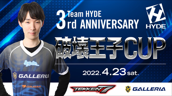 株式会社ハイド(本社:東京都新宿区、代表取締役:柳原健一、以下「ハイド」)は、運営するesportsチーム『TEAM HYDE』の設立3周年と所属選手破壊王選手の第二子『破壊王子』君の誕生を記念して、日本工学院八王子専門学校の協力のもと4/23(土)にeFootball ウイニングイレブン2021『HYDE CUP』と鉄拳7『破壊王子CUP』を開催します。