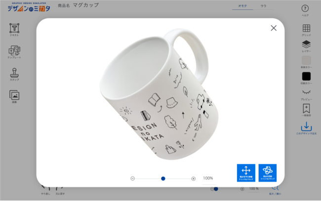 3Dに近い感覚のプレビューなので、オリジナルグッズの完成像を明確にイメージできます。