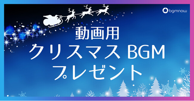 株式会社bgmnow(本社:東京都中央区、代表取締役:木ノ脇 理沙、以下「当社」)は、映像クリエイター向けBGM自動作曲サービス「bgmnow(ビー・ジー・エム・ナウ)」にて本日12月13日(火)よりクリスマス用の動画にご利用いただけるBGMの無料配布を開始いたしました。