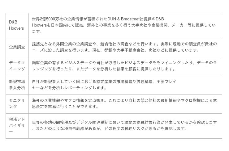 この結果、グローバルな税金管理、グローバルな与信調査・企業調査、グローバルな税務及び与信モニタリングをオプティ・グループとして顧客企業に対して一気通貫で提供できることになりました。