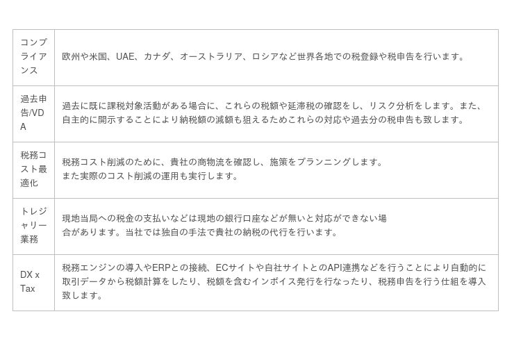 創業2010年以来、アドバイザリー(税務・戦略・調査)、コンプライアンス(税務申告・GDPR)、トレジャリーなどの各種サービスにて一気通貫で企業のデジタル化・グローバル化を支援するグループです。既にグループで1000社以上の大手企業とお取引をさせていただいております。
