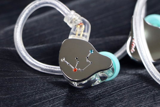 水瓶座の星図をイメージし、航空グレードアルミ合金のフェイスプレートにトリコロールカラーのストーンを埋め込んだ美しいデザインのイヤホンが誕生