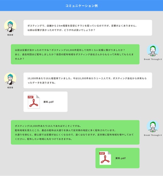 『Break Through-X』は月額3万円で売上に関するあらゆる課題を解決するチャット型マーケティング支援サービスです。