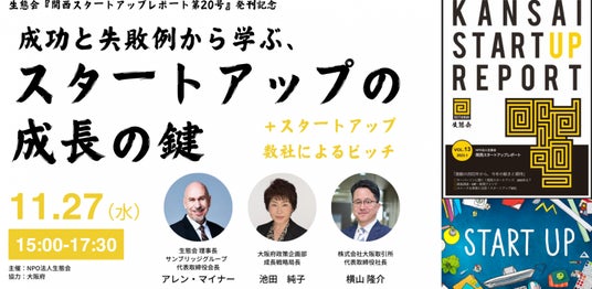 関西の起業エコシステムを可視化する、NPO法人生態会(所在地:大阪市北区、理事長:アレン・マイナー)は、『関西スタートアップレポート第20号』発刊記念イベントを11月27日にXportにて開催します。