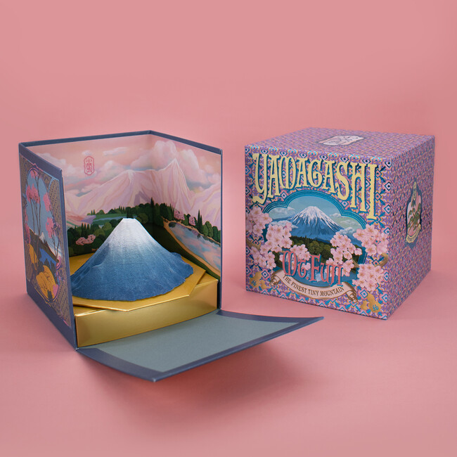中心商品となる「山菓子」は、日本に実在する美しい山々の稜線を地形データから忠実にかたどった、手のひらサイズのチョコレート菓子です。それぞれの土地の特産品を取り入れたガナッシュやスポンジを地層のように重ね、その山が持つイメージや季節を表現しています。2022 年秋には、「 桜島御岳(夏)」「利尻山(冬)」「由布岳(秋)」「大室山(晩春)」「八丈島西山(夏)」を伊勢丹新宿店ポップアップショップで先行販売し、完売が続くなどスイーツ好きや山好きの間で話題を呼びました。
