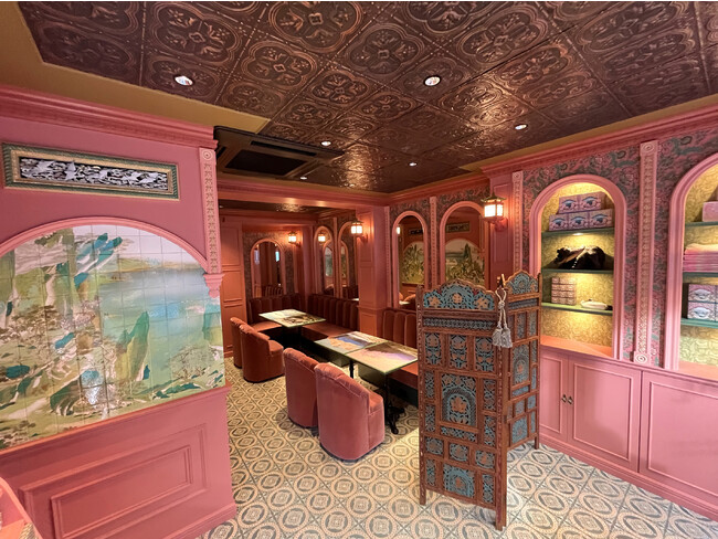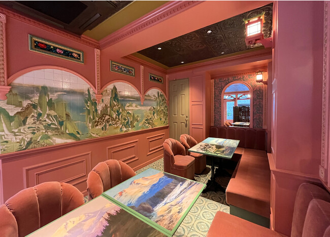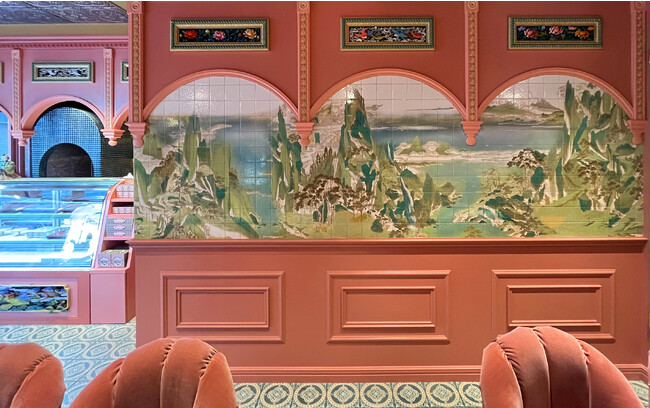 “桃源郷の土産物屋” をイメージした異国情緒あふれる店内では、日本古来の雛文化に着目したジオラマのようなチョコレート菓子「山菓子」を中心に、オリジナルの「おこし」など和洋折衷のお菓子と、台湾茶や2種のショコラショーなど、こだわりのドリンクを販売。テイクアウトの他、併設するティーサロンでのイートインもお楽しみいただけます。