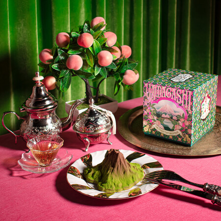 日本の美しい山々を手のひらサイズに小さくした、ジオラマのようなチョコレート菓子です。国土地理院の実際の地形データを元に型から製作しています。切り分けると地層のようにガナッシュ、スポンジ、果実やナッツが地層のように重なるレイヤーケーキになっており、それぞれの山にはその地方の厳選された特産品を加え、その山をイメージした風味と季節を表現しました。小さきものを愛でる、日本の雛文化に着目した箱庭の情景のような、新しい解釈の「日本のお菓子」です。「小楽園 TEA SALON & BOUTIQUE」のオープンを記念し、日本が誇る名峰「富士山」が新たに加わりました。