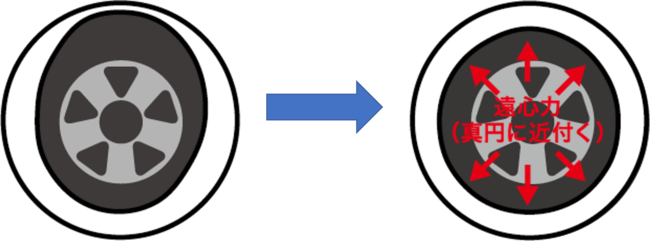 イッセ・スノーソックスには独自のオートセンター機能が備わっており、走行中もソックスを常に適正な位置に維持します。装着直後は中央のゴムが楕円になっていても、走行を開始するとタイヤの回転によってゴムが真円に近づいていきます。これにより安定的・安全に走行することができます*。