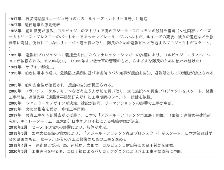近代建築の巨匠として知られるル・コルビュジエがリノベーションを手掛け、弟子の日本人建築家・前川國男が担当したコンクリート船「アジール・フロッタン(=浮かぶ避難所)」が、2020年パリで復活しました。