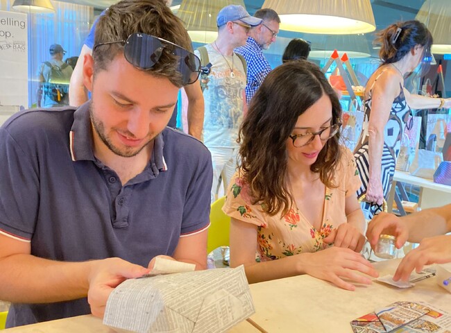 また、直近では2022年にイタリア「ミラノデザインウィーク」への出展が叶い、会場を訪れた業界関係者をはじめ、現地の一般人や子ども達へのワークショップも行いました。新聞ばっぐを通した環境保全への取り組みは、世界に通用する考え方だと再認識し、今後はパリへの展開を予定し、その準備も着々と進んでいます。