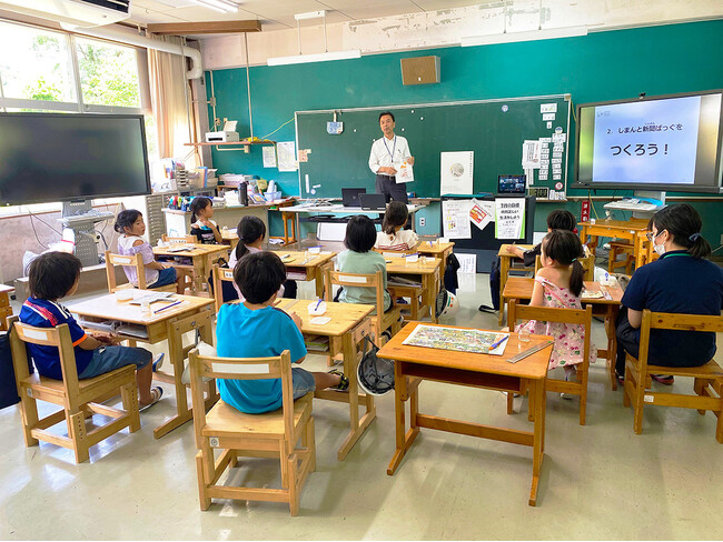 しまんと新聞ばっぐの活動を、小学校の図工の時間にと動き出したのは2023年のことでした。地元にある四万十町十和地域の2校からはじまった活動は、いまや四万十町全域の小学校10校の図工・環境学習・ゆとりの時間に採用され、子ども達との交流を広げています。