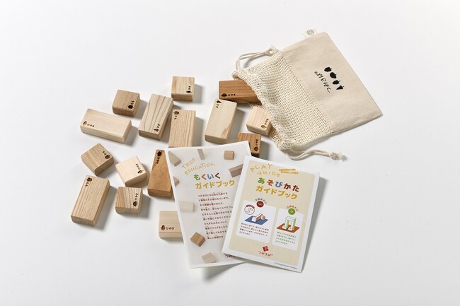 ●内容 :積み木、収納バック(巾着型)、あそび方ガイドブック、もくいくガイドブック