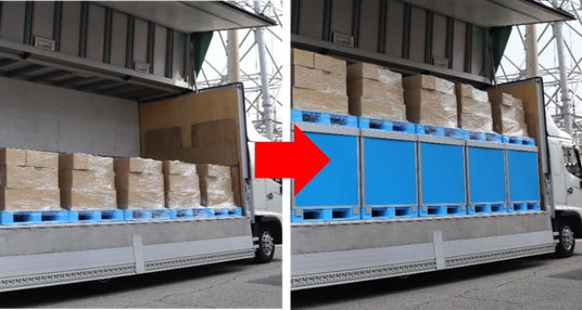 JIT ダンカーゴを利用することで、破損・荷崩れなどの輸送中の荷物事故を抑制し、段積みが可能になり、荷台にデッドスペースを作らず、積載効率アップにつながります。