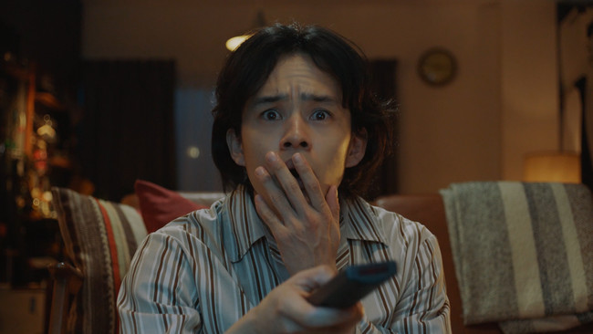 夜中に恋愛映画を鑑賞していた池松さんは、リモコンでいったん映画を止めて立ち上がります。電子レンジから温まったホットミルクを取り出すと、SOYJOY コーヒー&ナッツが池松さんに向かって目をパチパチします。映画は無事ハッピーエンドに終わり、SOYJOYを食べながら池松さんは涙を流します。